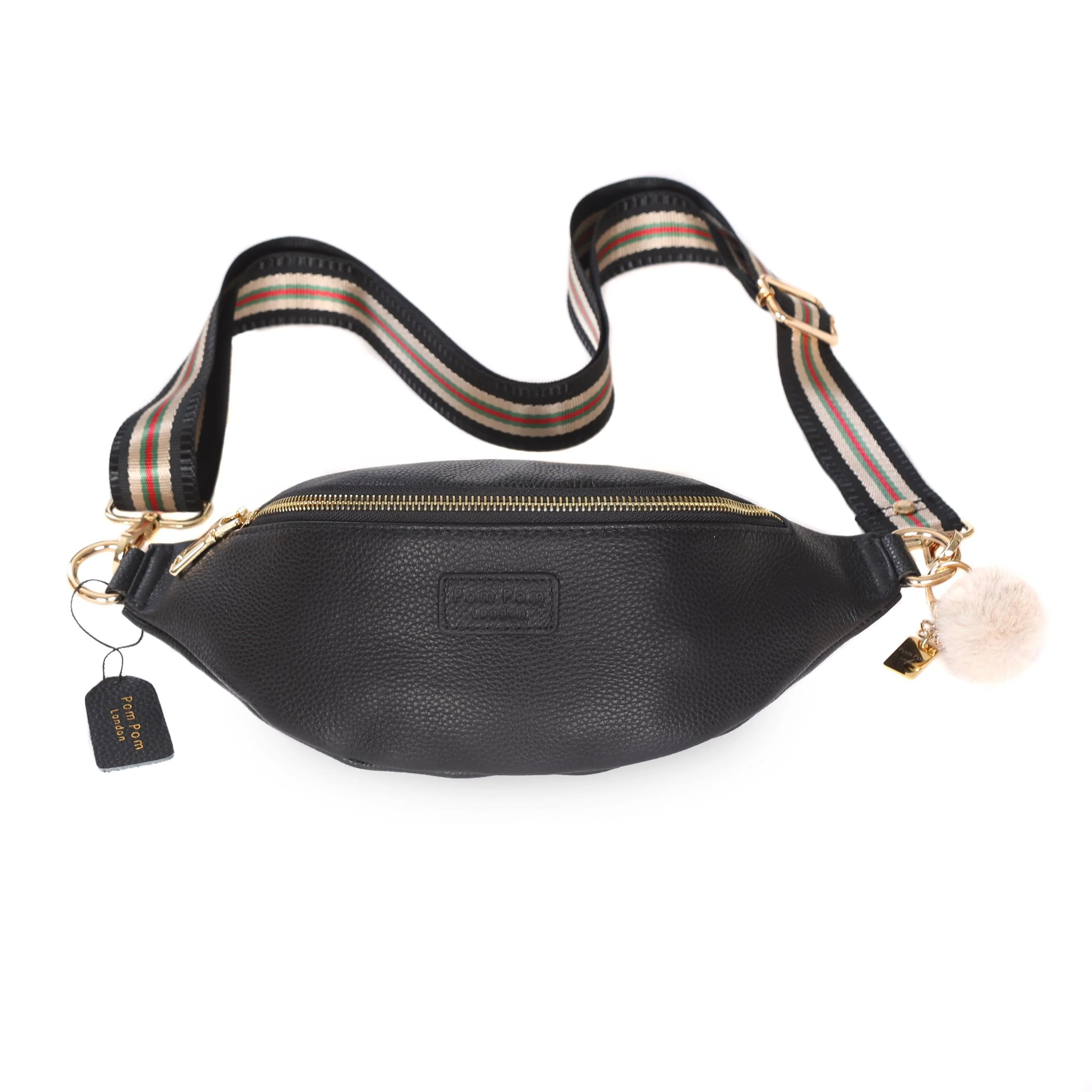 - Pom Pom London Bum Bag in Black - A stylish and practical hands-free bag, perfect for everyday wear.