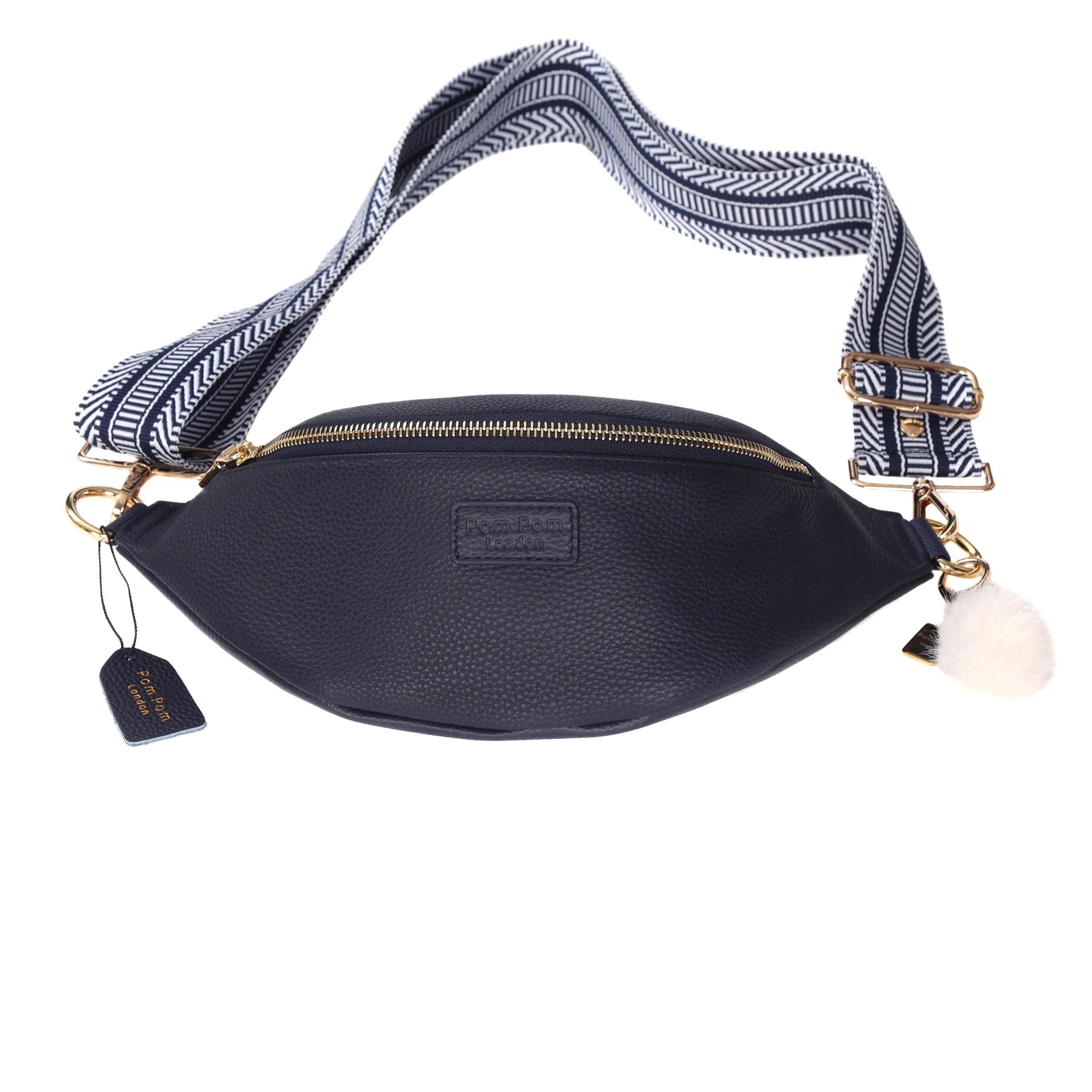 - Pom Pom London Bum Bag in Navy - A stylish and practical hands-free bag, perfect for everyday wear.