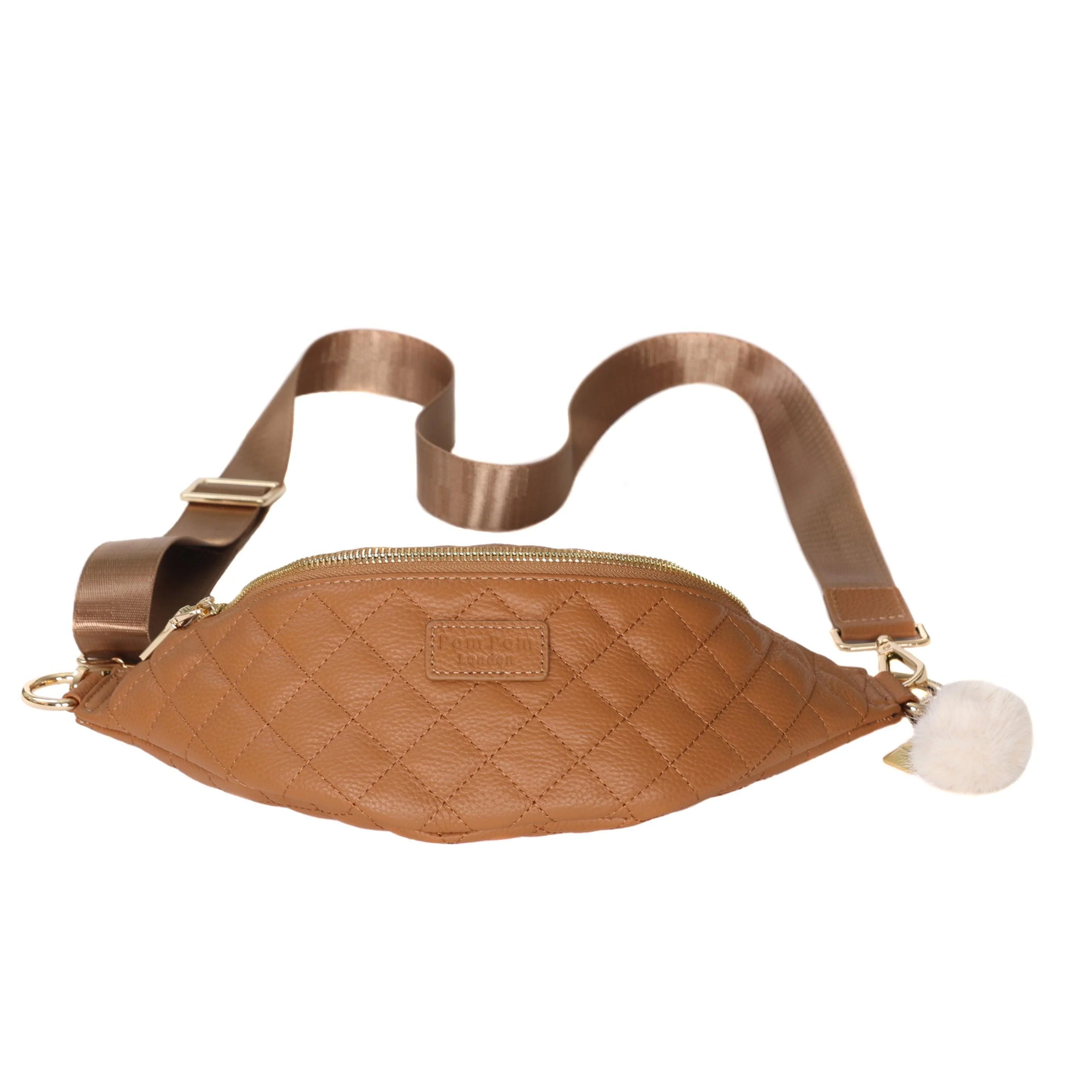 Introducing the Pom Pom London Quilted Bum Bag Maple a new edition to our bum bag range in a quilted style. Perfect for a casual stroll, a weekend of travelling or just day to day life. Sling over your shoulder or wear across the body. This bag fits all the essentials making it the perfect bag for everyday use.