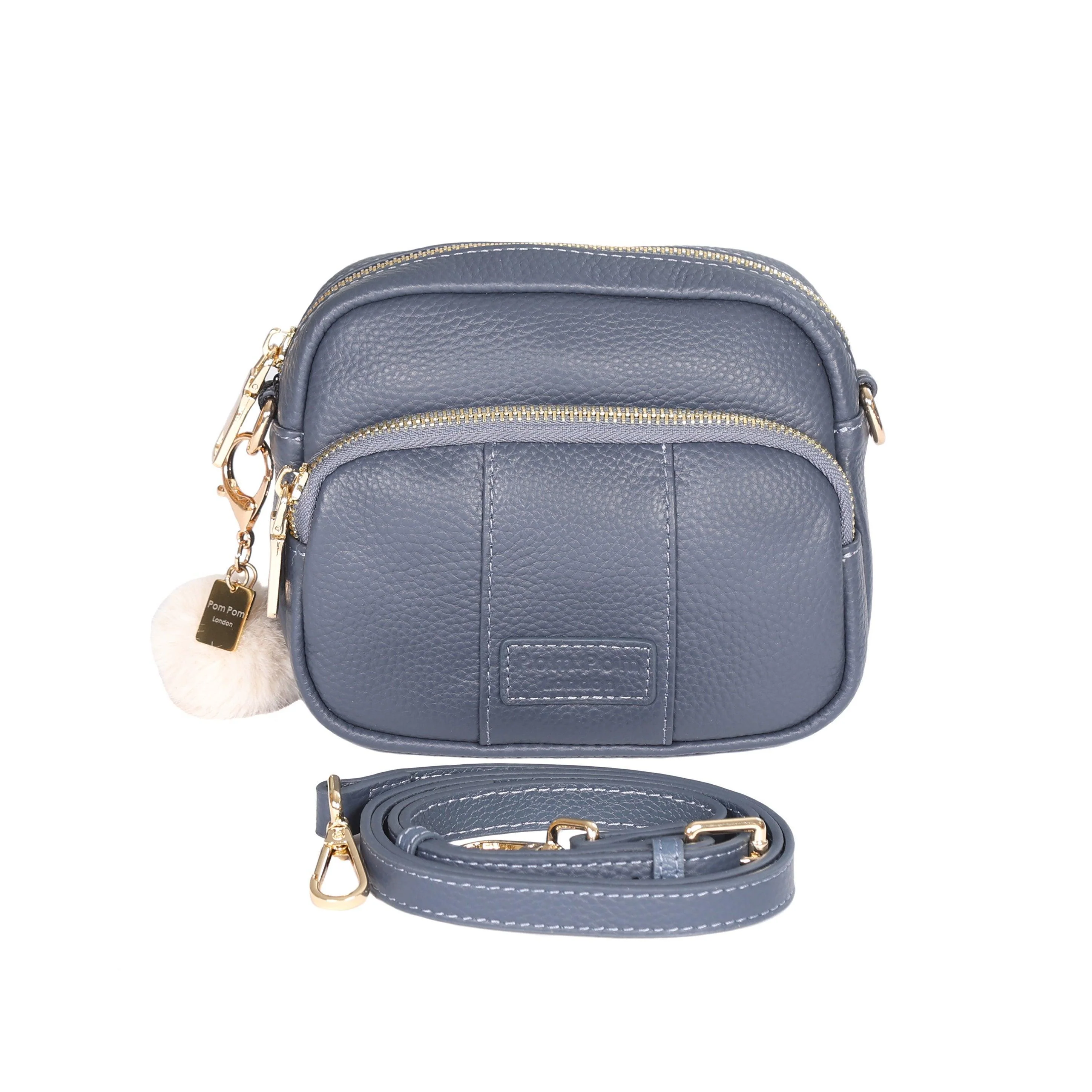 Pom Pom London Original Mini bag in Slate Blue - A classic crossbody bag in a timeless core colour.