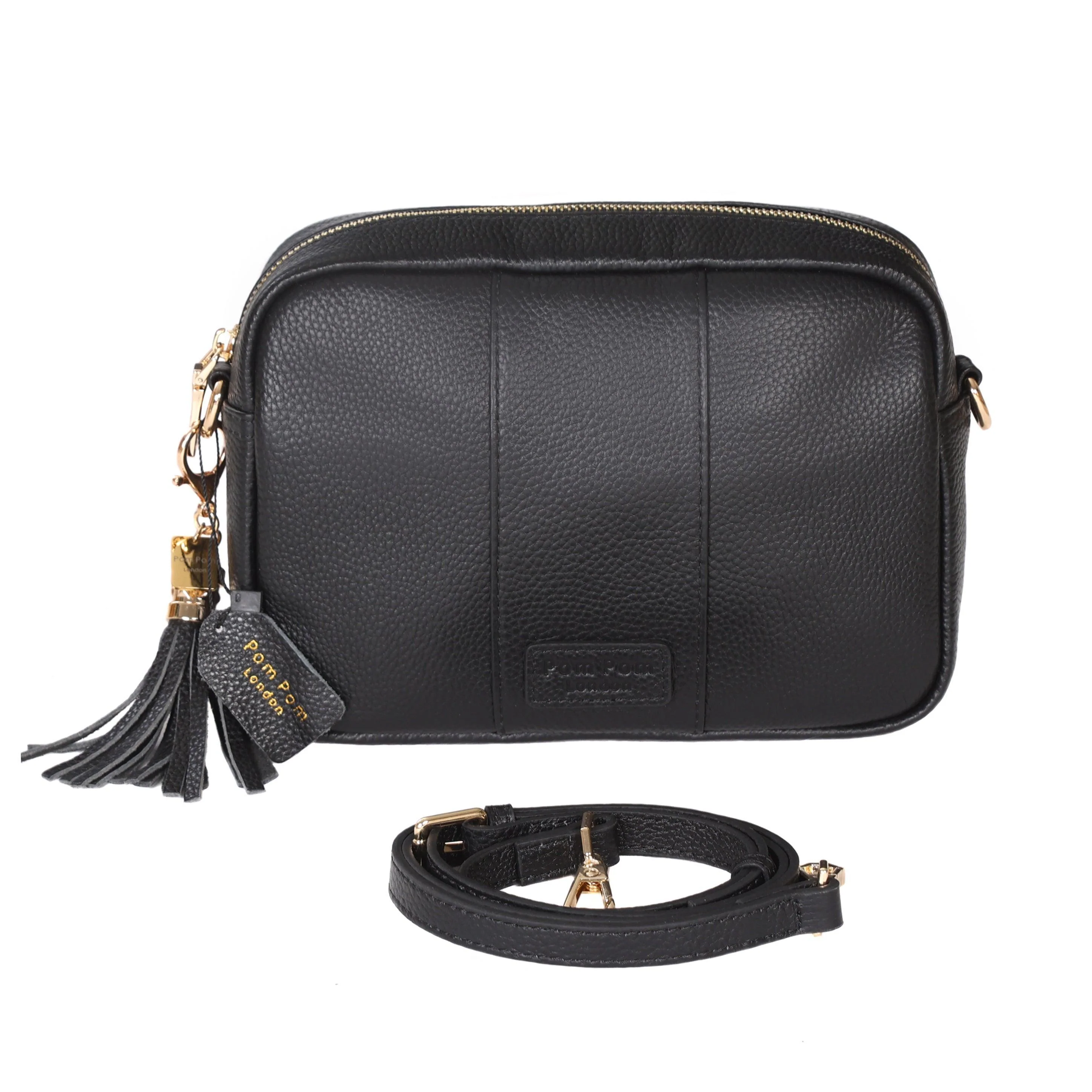 Pom Pom London City Bag in Black - A classic crossbody bag in a timeless core colour.