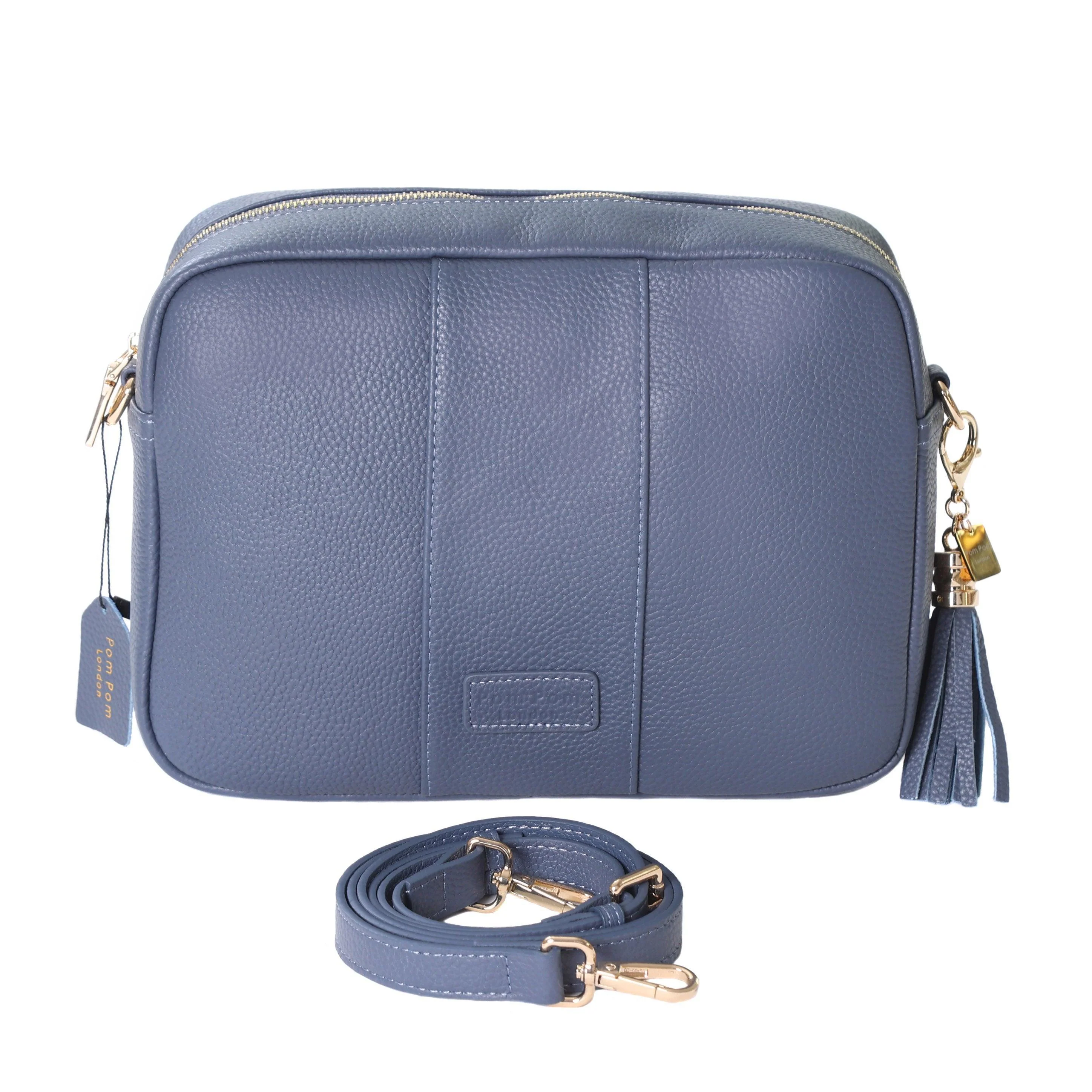 Pom Pom London City Plus Bag in Slate Blue - A classic crossbody bag in a timeless core colour.