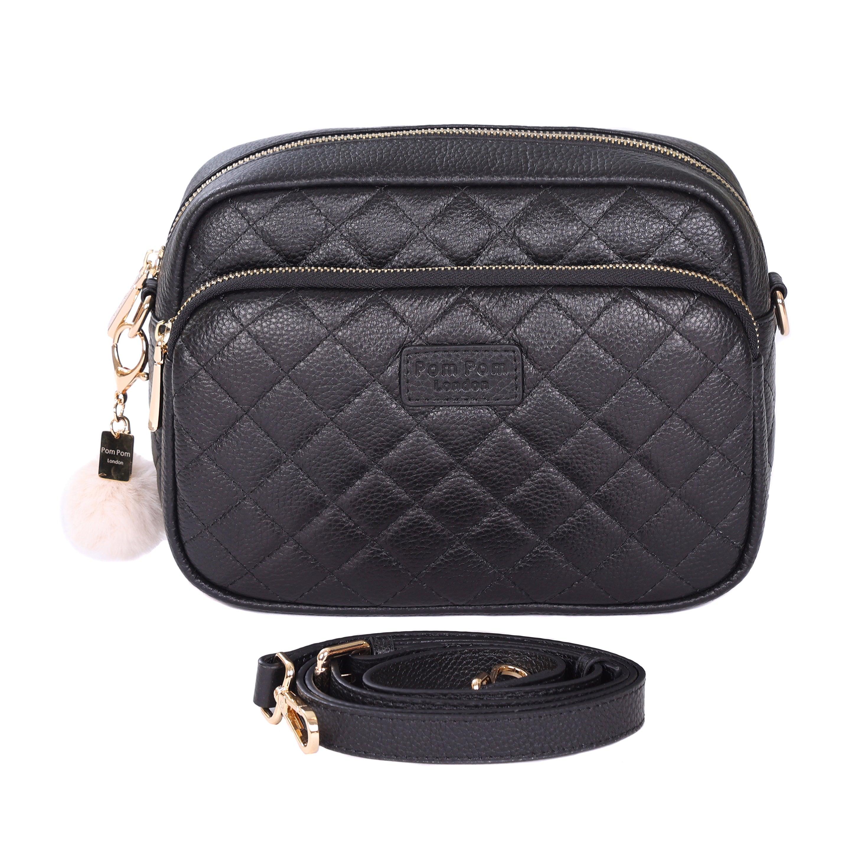 - Pom Pom London Quilted Original Plus Bag in Black - A stylish crossbody crafted in quilted full grain leather.